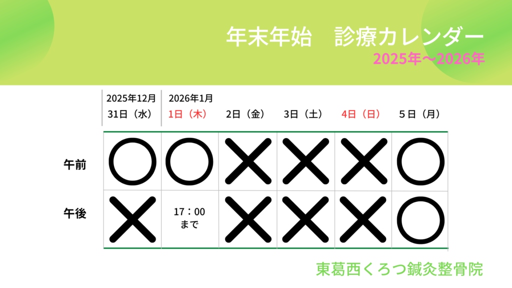 2025年~2026年 年末年始の診療時間は以下の通りです。